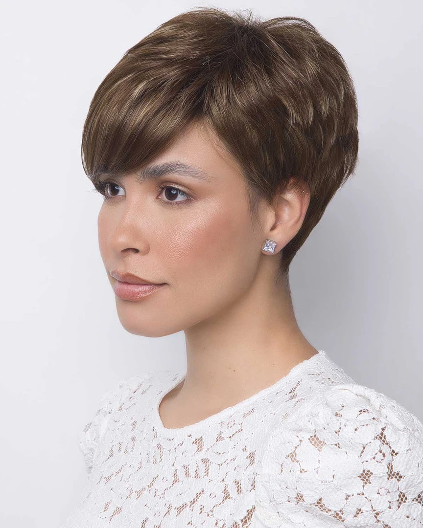 Amara from our Alexander Couture Collection is a short-length synthetic wig. This straight ready-to-wear wig is a pixie cut with a stylish fringe on the side. This style has texture and a body that will give you an effortless look. Amara is machine-made with adjustable tabs in the back nape area to allow a more comfortable fit. The result is a comfortable fit with a natural look that is both fashionable and easy to wear.