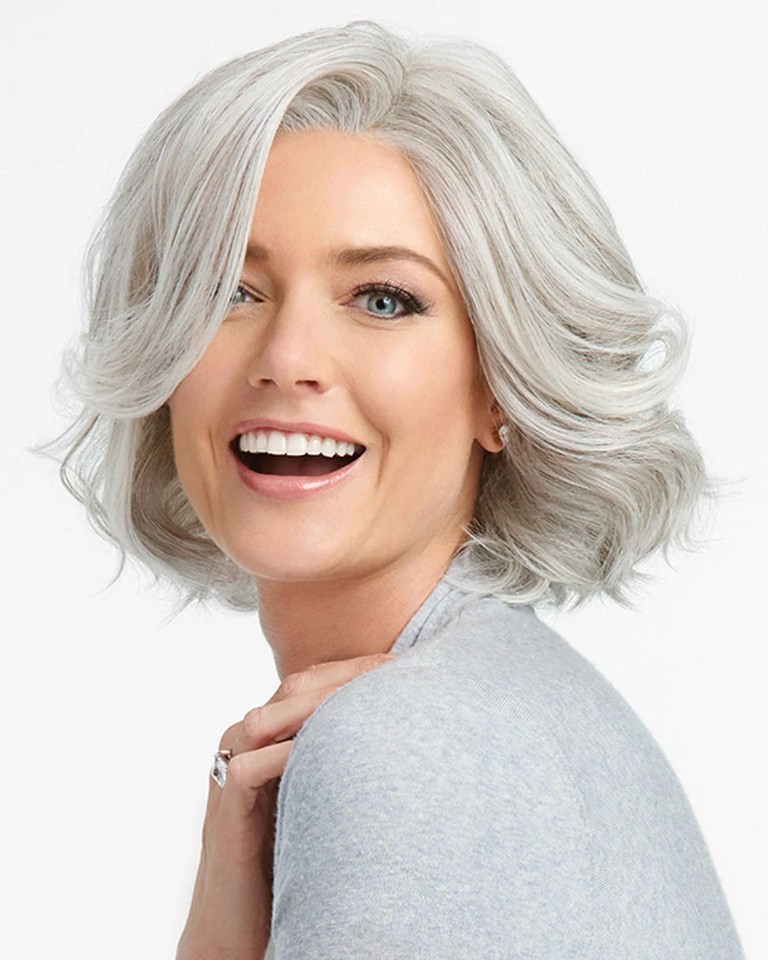 A chopped bob that’s loaded with wave and movement, this flattering style includes an eyelash bang and curled back waves for a thoroughly modern vibe. Slightly tapered ends and natural volume bring this classic silhouette up to date.