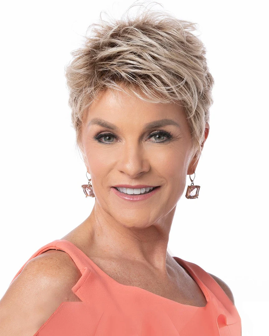 Loaded with texture and airy fringed bangs, Toni Brattin Infinity Wig features a tightly tailored neckline that easily creates a demure sophisticated look or a more casual tousled style. A specially designed cap can be easily adjusted for a custom and comfortable fit with the sizing tabs in the neckline.