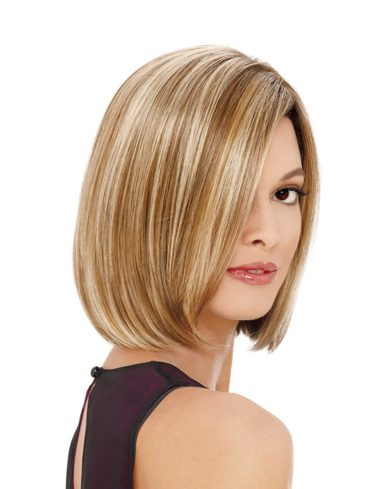 Jamison is a classic bob with very light layering at the ends. Her lace front combined with side swept lace part, creates the most natural look possible.