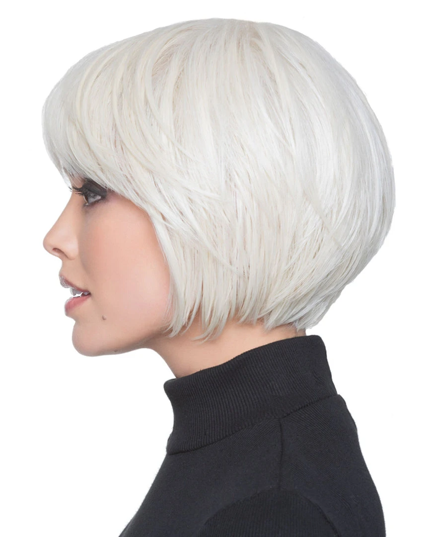 A geometric blunt cut with perfectly placed bangs. A bob back that tapers at the nape and our custom fitting Sheer Comfort cap with a sculpted lace front and a soft mesh monofilament top for an undetectable hairline that delivers all-day comfort.