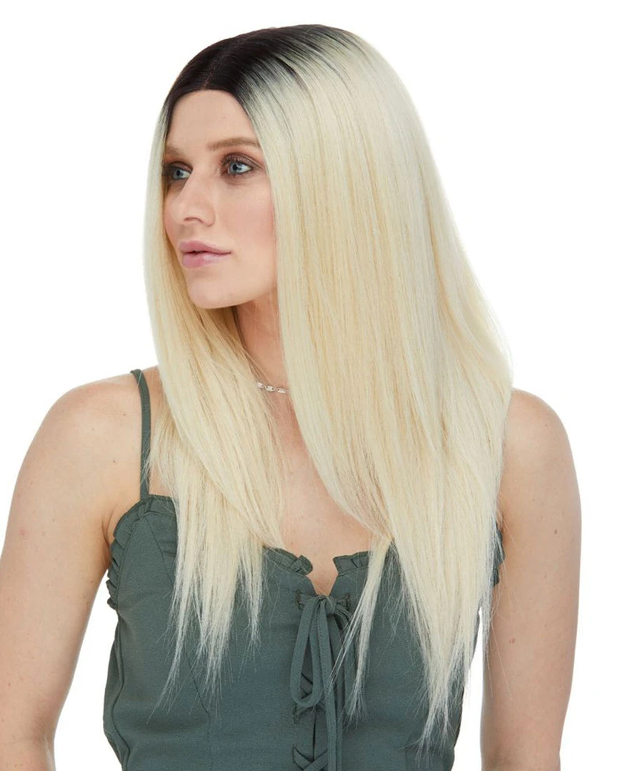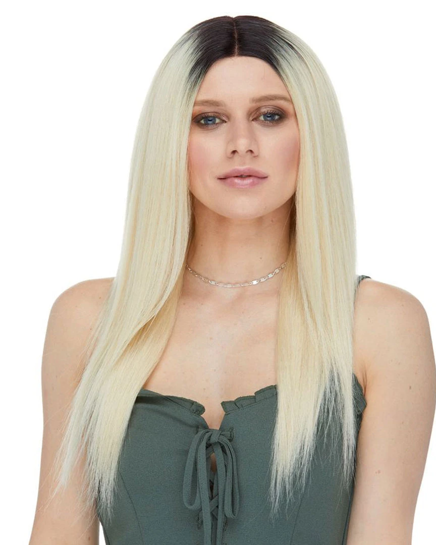 This Lace Front wig flaunts a bold center part and smooth and sleek hair with razor cut ends.