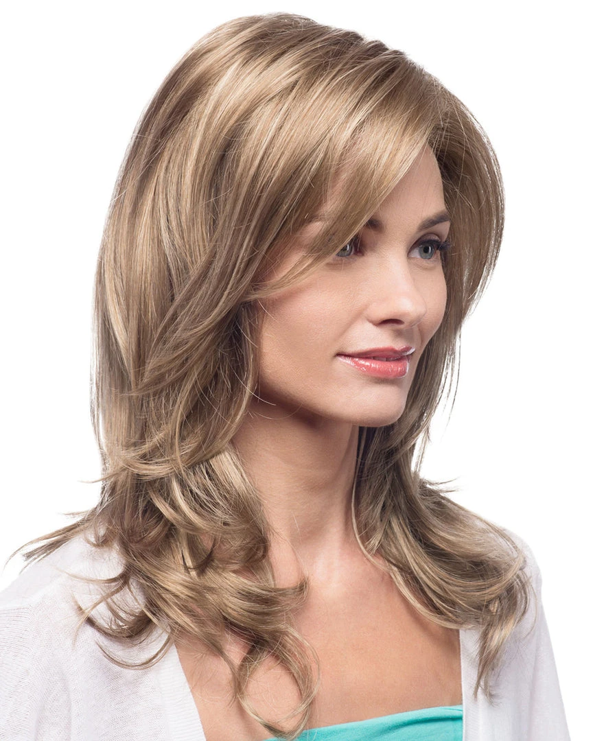 Front Lace Line/Below the shoulder Layered Cut with Natural Flair & Side Swept Bangs