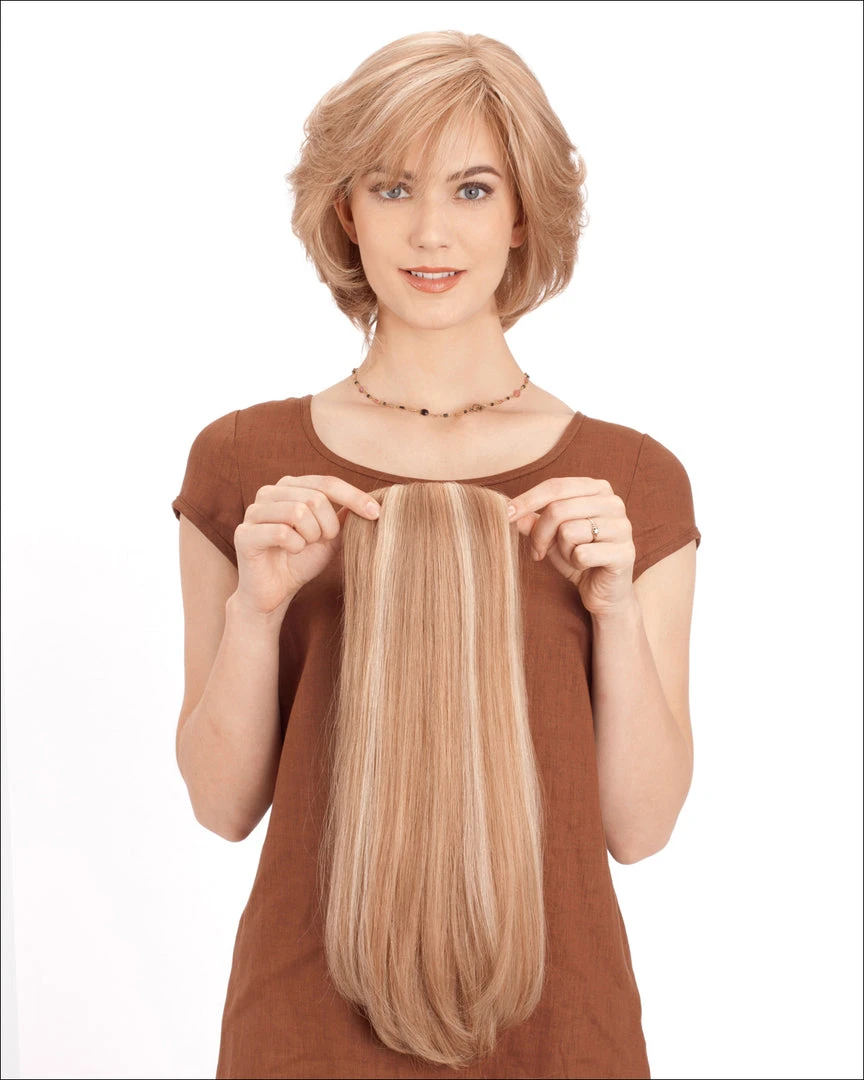 Especially designed to give fullness, our Toppiece can be attached at various angles, vertically or horizontally to match flow of any hairstyle.