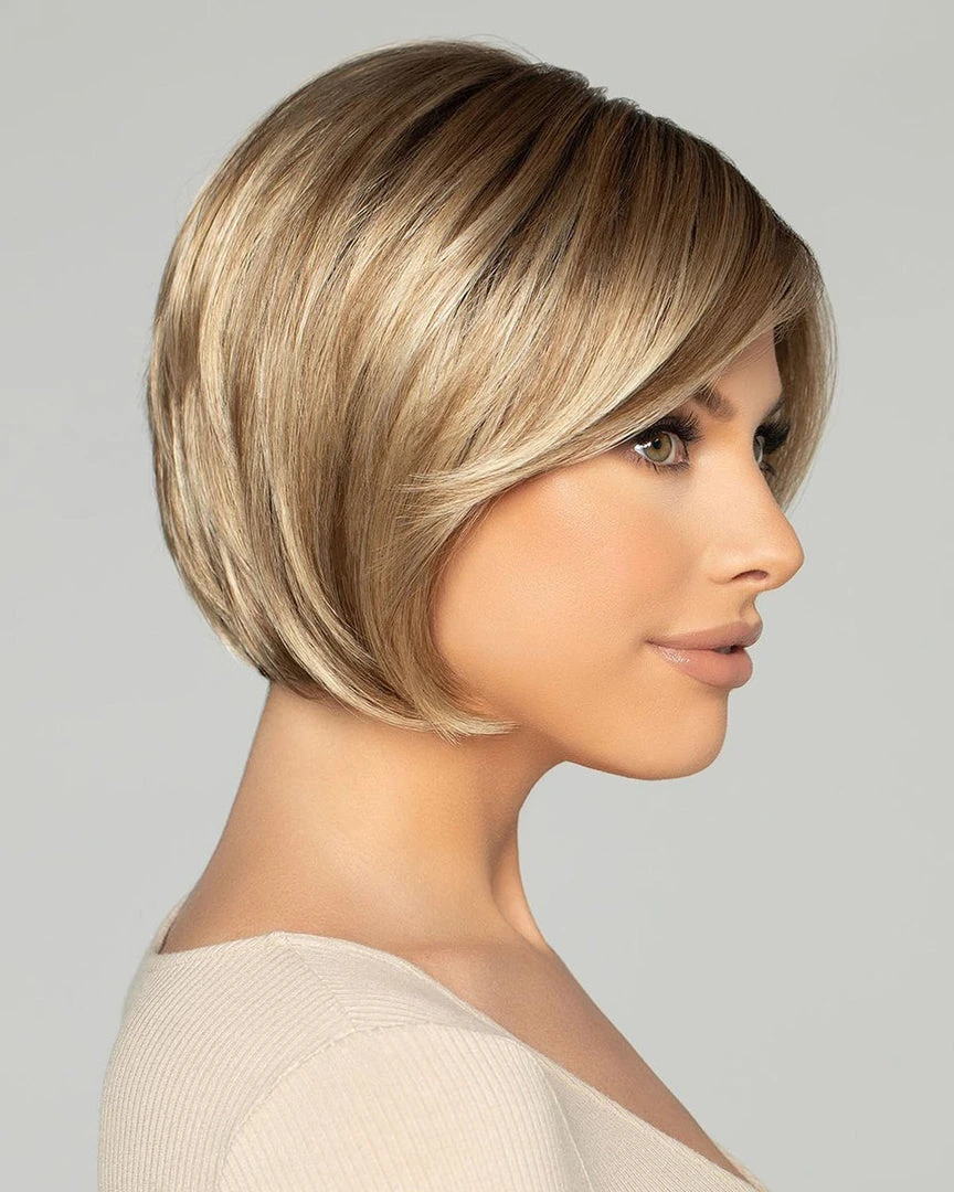 Sleek bob with a side-swept fringe for a youthful, fun look.
