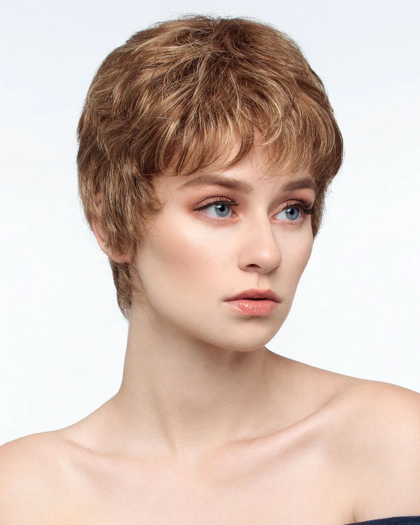 Sassy in the front and sophisticated in the back, this women’s wig is a true and timeless testament to versatility. Showcasing bangs that frame the face and create volume up top, our bestselling pixie cut wig offers an iconic look inspired by Edie Sedgwick and other short-haired starlets from eras past.